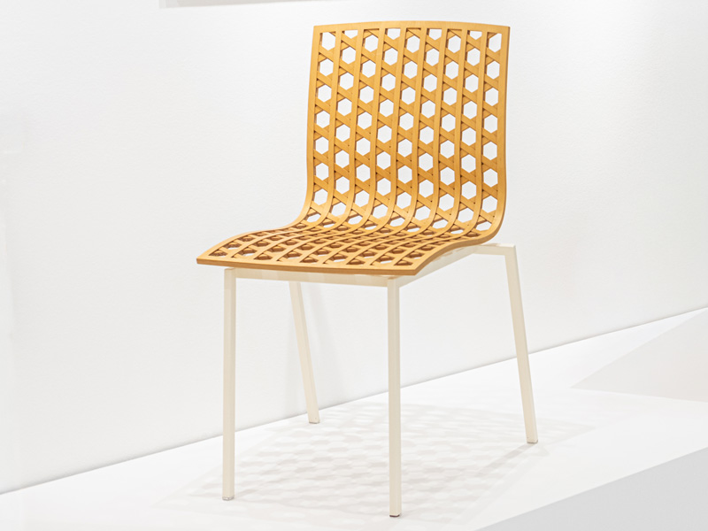 The Metz chair is inspired by the hexagonal laminated timber structure of the Centre Pompidou Metz, France. The development of the prototype has been completed in collaboration with ARTEK (Finland). The structure is made of form pressed birch plywood supported by white powder coated steel legs.