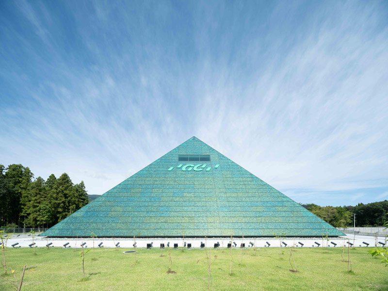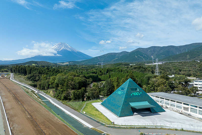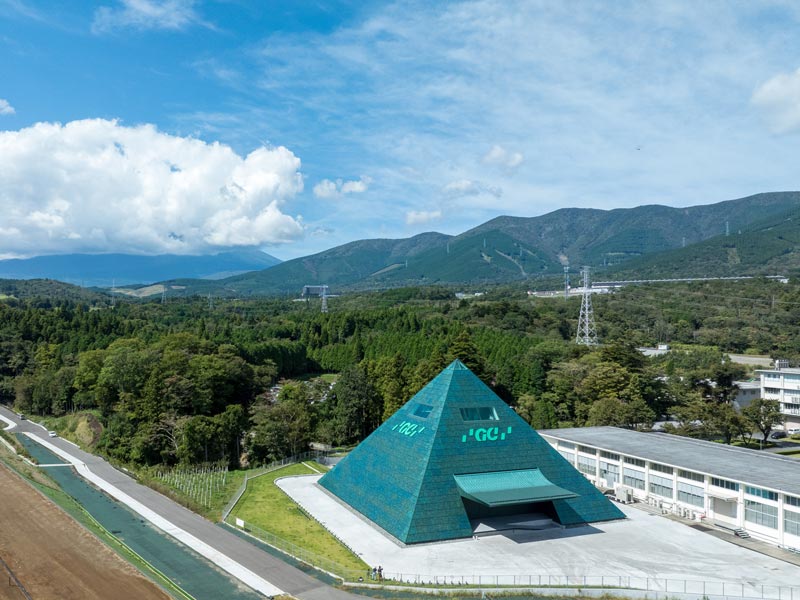 建設中の第二東名高速道路脇の敷地に、会社創立100年を記念したシンボリックな工場の設計の依頼であった。高速道路を通る車からも目立ち、歯科材料用のハイテク・ガラスの工場らしいもの、更にトップに富士山の展望スペースを設けることが要求された。ガラスの製造工程により下階の面積は大きく、展望スペースは小さく、また富士山とのコントラストとなるようにピラミッド形が導き出された。工場で使われる電力をほぼ賄う発電をするため、ピラミッド状だと北面でも発電できることが確認でき、全面をソーラーパネルで被うことができた。