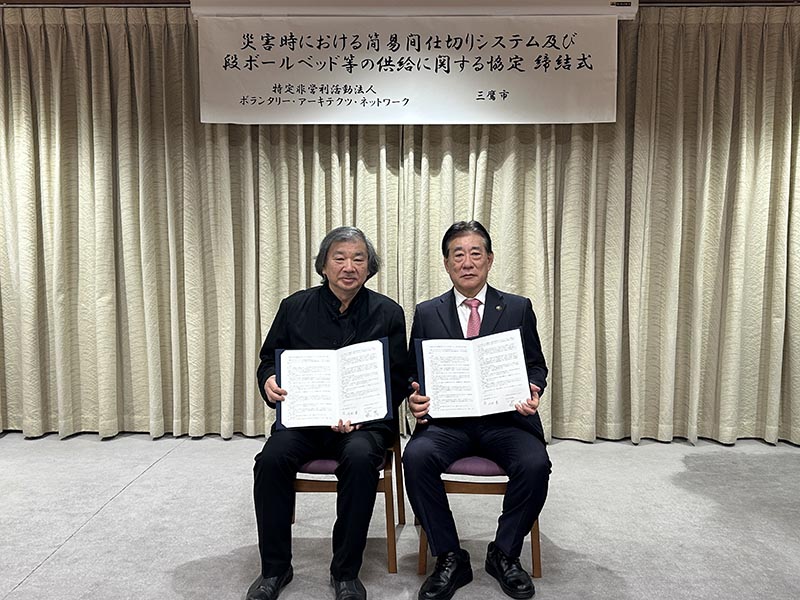 2025日12月11日、ボランタリー・アーキテクツ・ネットワーク(VAN)は、東京都三鷹市と避難所用間仕切りシステムの供給に関する災害協定を締結しました。